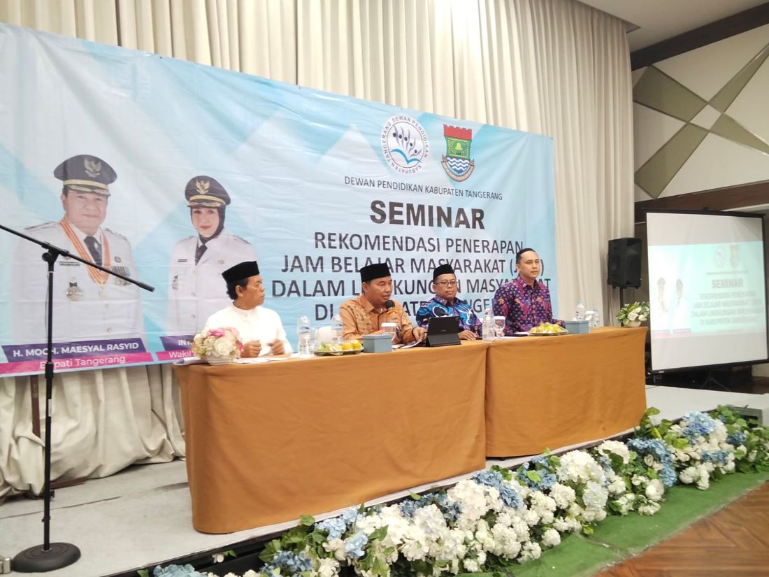 Demikian diungkapkan Ketua Dewan Pendidikan Kabupaten Tangerang, Mas Iman Kusnandar disela-sela Seminar Rekomendasi Penerapan JBM di Hotel Lemo, Kelapa Dua, Kabupaten Tangerang, Jum’at (28/11/2025). Seminar yang diinisiasi Dewan Pendidikan Kabupaten Tangerang ini dibuka oleh Bupati Moch. Maesyal Rasyid dan menghadirkan dua narasumber pemateri, Komaruzaman dan Masduki.