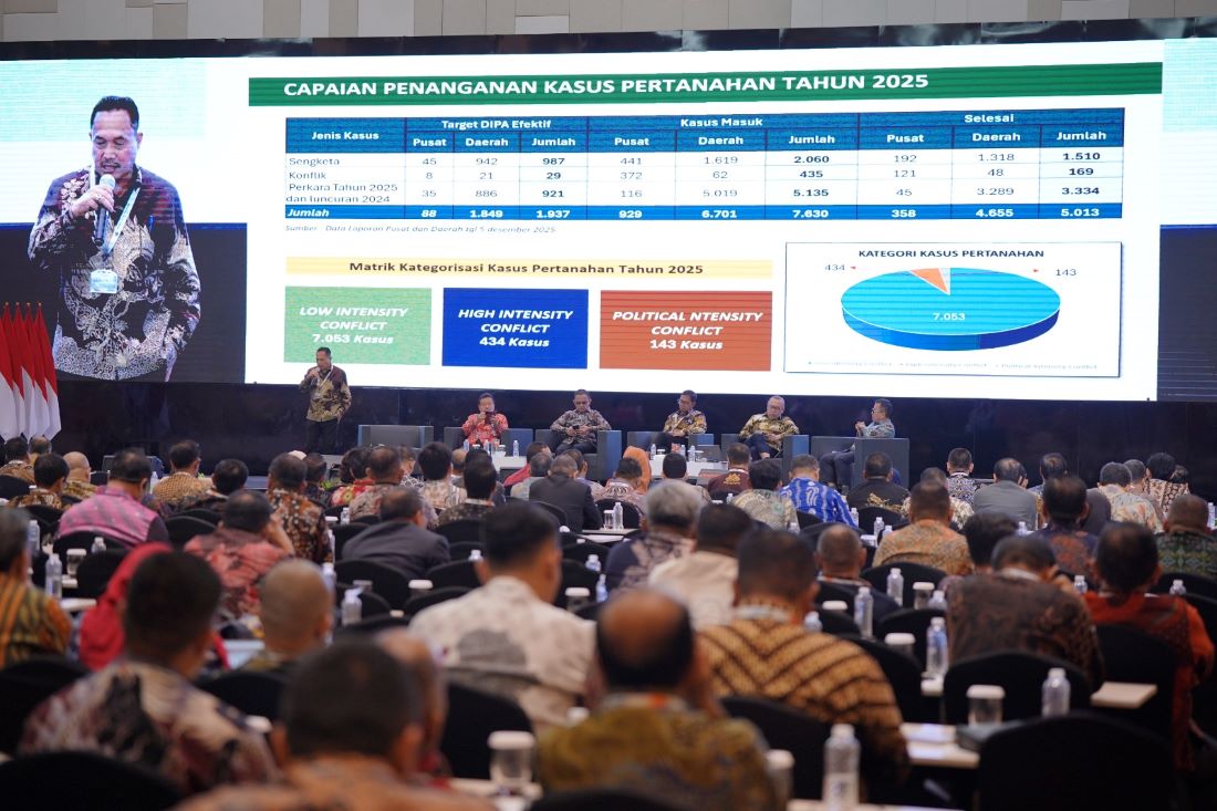 Sepanjang tahun 2025, Satgas Pencegahan dan Penyelesaian Tindak Pidana Pertanahan berhasil mencatat capaian signifikan. Sebanyak 90 kasus diselesaikan dari target 65 kasus, 185 tersangka ditetapkan, dan potensi kerugian negara senilai Rp23.378.726.573.570 atau lebih dari Rp23 triliun berhasil diselamatkan. “Ini angka yang luar biasa. Kita mampu menyelamatkan potensi kerugian yang nilainya lebih dari Rp23 triliun,” ungkap Dirjen PSKP Kementerian ATR/BPN.