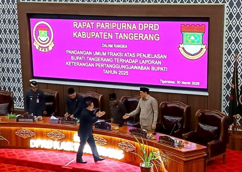 TANGERANG (JD) — DPRD Kabupaten Tangerang menggelar rapat paripurna dengan agenda pemandangan umum fraksi terhadap Laporan Keterangan Pertanggungjawaban (LKPJ) Bupati dan Wakil Bupati atas pelaksanaan APBD Tahun Anggaran 2025, Senin (30/03/2026).