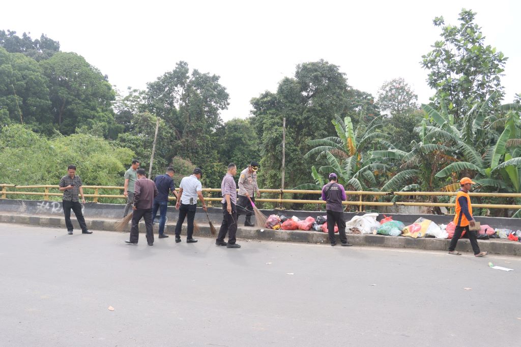 Pada kegiatan ini, personel Polresta Tangerang bersama unsur terkait membersihkan berbagai jenis sampah, mulai dari sampah plastik, potongan kayu, rumput, hingga dedaunan yang berserakan di sepanjang Jalan Raya Arya Santika, tepatnya Jembatan Perbatasan Cikupa-Tigaraksa, dan Jalan Raya Serang, Desa Bojong Kecamatan Cikupa.