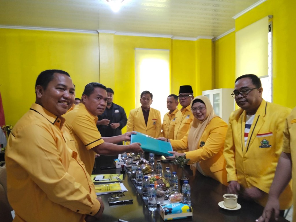 Intan Nurul Hikmah yang juga kader senior Partai Golkar ini membawa sejumlah berkas persyaratan dan menyerahkannya ke Panitia Pelaksana Musyawarah Daerah (Musda) ke-XI DPD II Partai Golkar Kabupaten Tangerang.