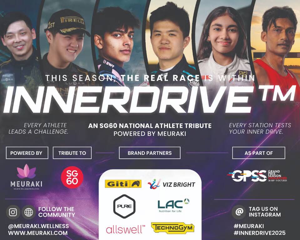 MEURAKI, a wellness innovation platform rooted in holistic self-care, is proud to announce the launch of INNERDRIVE™: The Performance Circuit, a signature performance-wellness circuit to be held during the Grand Prix Season Singapore (GPSS) 2025. This immersive six-station activation pays tribute to Singapore local athletes and is one of the events curated by Singapore Tourism Board to showcase the best of Singapore’s lifestyle and high-octane, race-themed festivities.