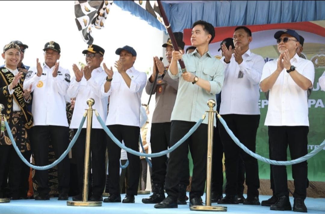Wapres Gibran tiba sekitar pukul 08.56 WIB dan disambut langsung oleh Menteri Pertanian (Mentan) Andi Amran Sulaiman, Menteri Koordinator (Menko) Pangan Zulkifli Hasan, Menteri Kehutanan (Menhut) Raja Juli Antoni, Kapolri Jenderal Polisi Listyo Sigit Prabowo, Wakapolri Komjen Pol. Dedi Prasetyo, Kapolda Banten Irjen Pol Hengki, Gubernur Banten Andra Soni, serta Bupati Tangetang Moch Maesyal Rasyid.